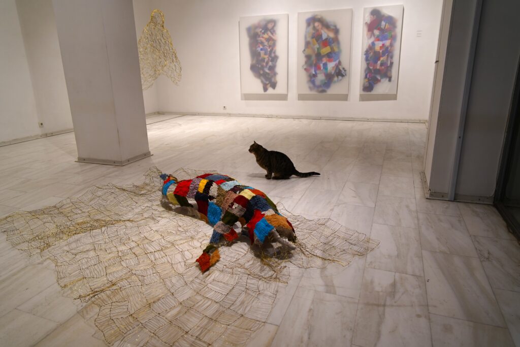 Γλυπτό: συρμάτινη ύφανση από μπρούτζο και νήματα