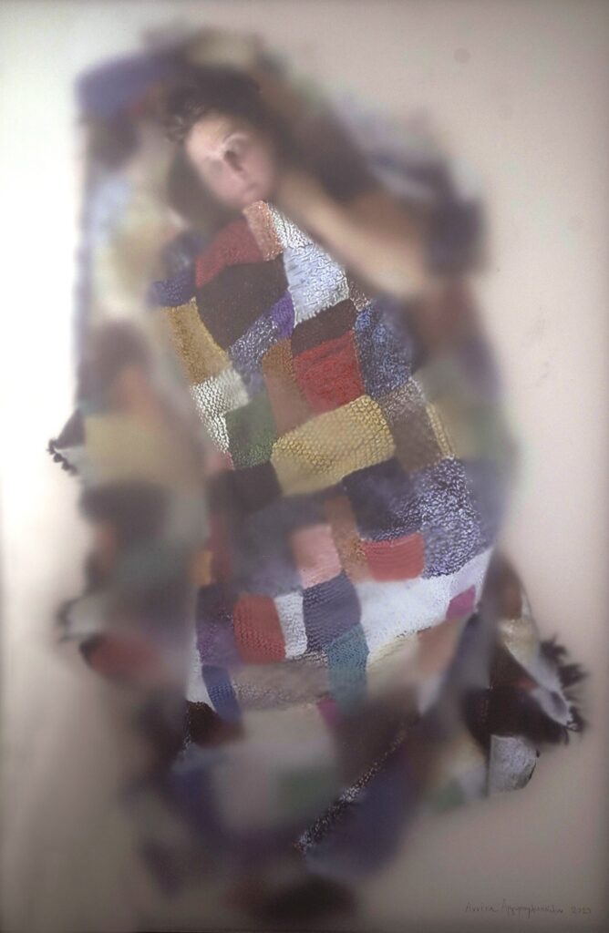 Mixed media: digital print, acrylics,
